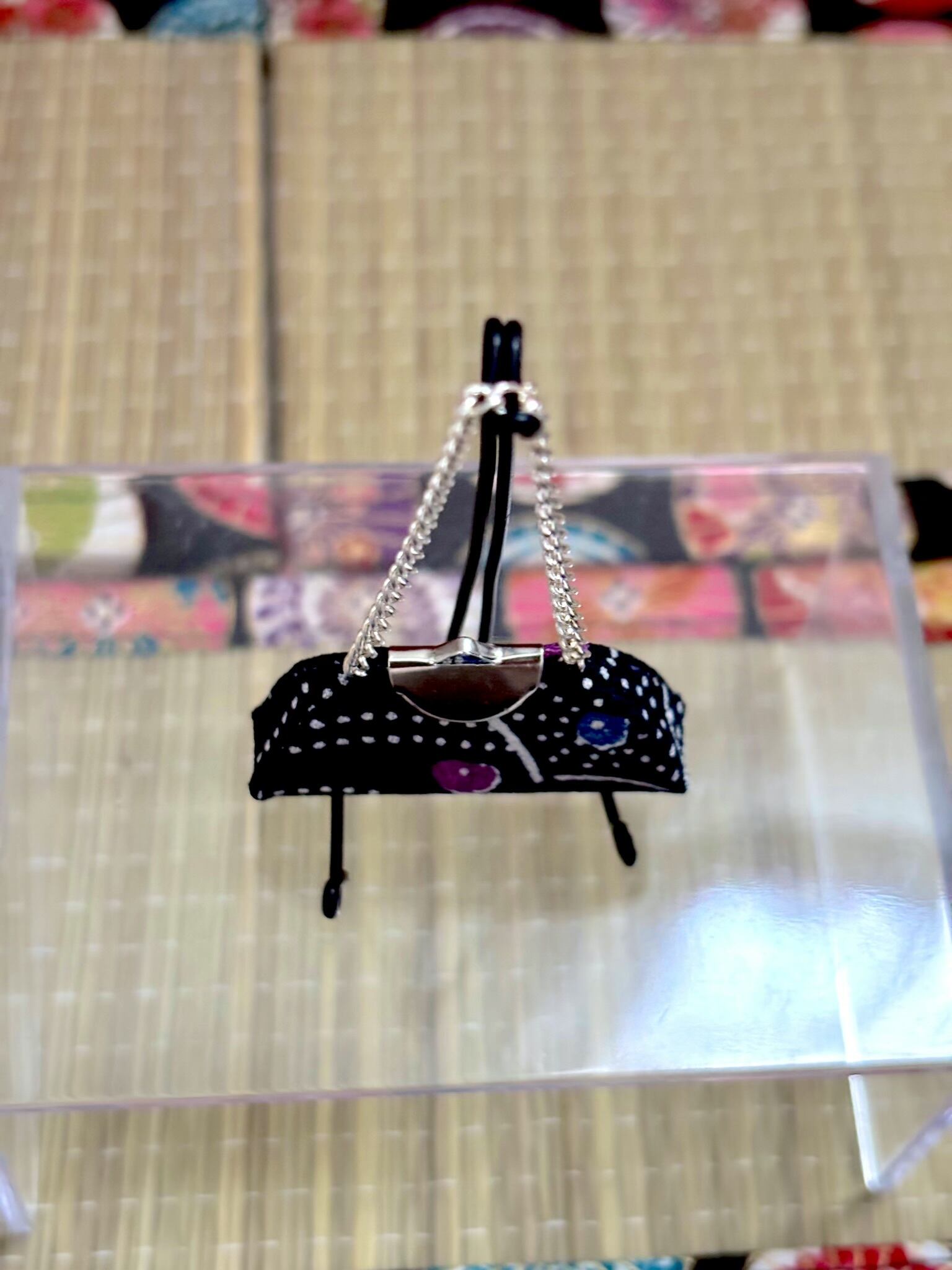 華やかな和の雰囲気を纏う「正絹 がま口風バック」が新登場!美しい正絹で仕立てられたこのバックは、ミニチュアサイズながらも贅沢な和装のエッセンスをしっかりと表現しています。華やかな絞り模様が施され、正絹の小紋の美しさを存分に引き立てています♪また、がま口風のデザインが、使い勝手の良さとおしゃれを両立させているのが魅力です。