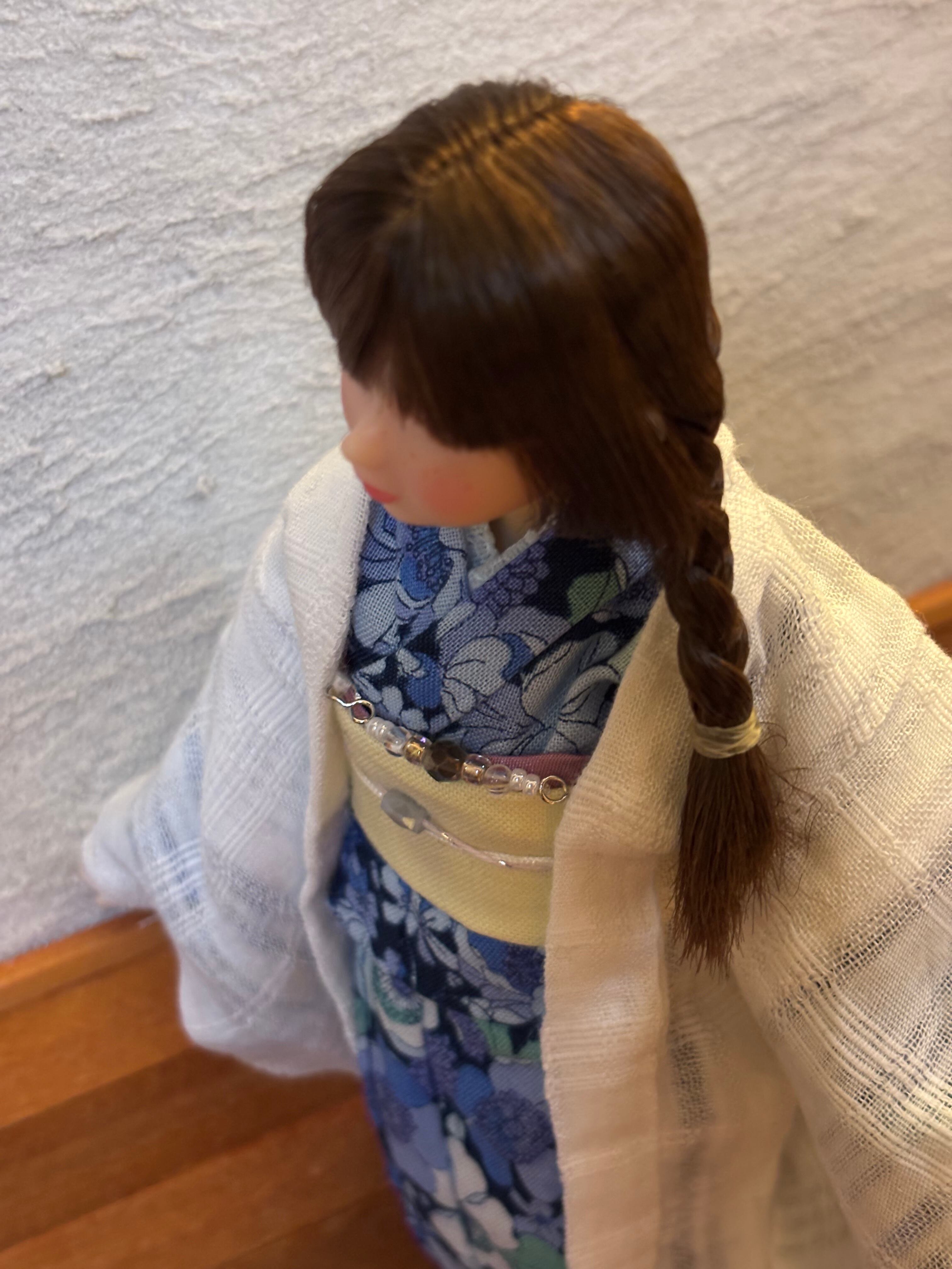 美しい和の装いを纏う羽織が登場!この羽織は、シンプルな透かし模様が施された何にでも合わせやすいなデザインで、ミニチュアサイズながらも本格的な和服の魅力を存分に表現しています。